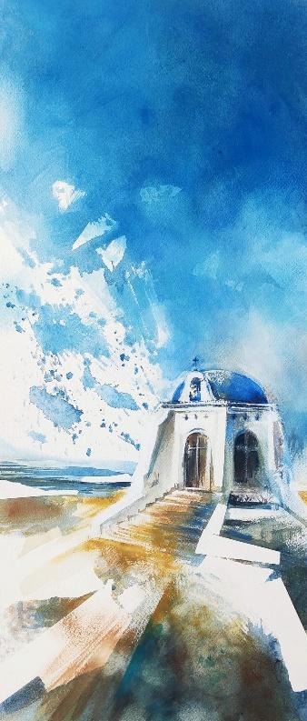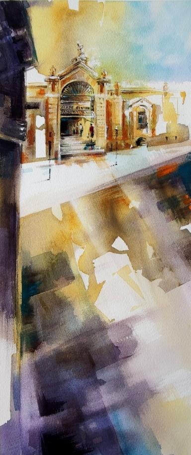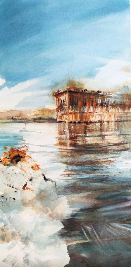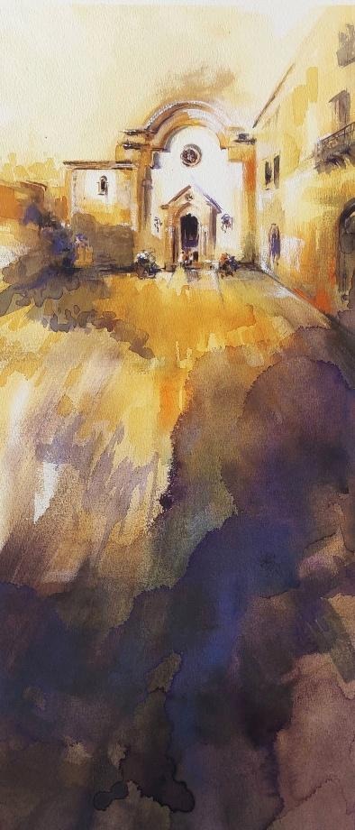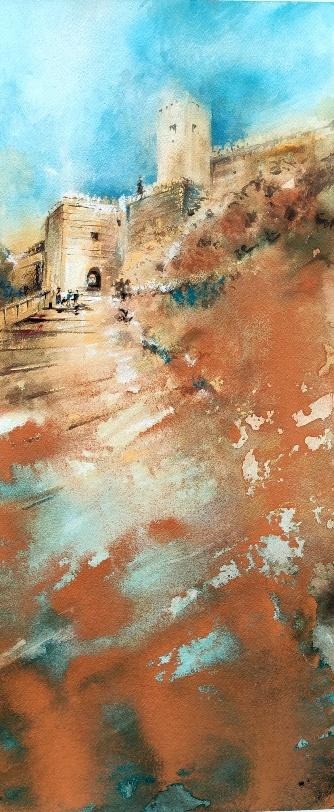 Mi forma de mirar Almería es a través de la acuarela: la fe que asciende en silencio por sus ermitas, la luz antigua que se derrama sobre sus murallas, el rumor vivo de sus mercados y el hierro que abraza el mar con nostalgia se funden en agua y color para contar la historia que habita en mí.